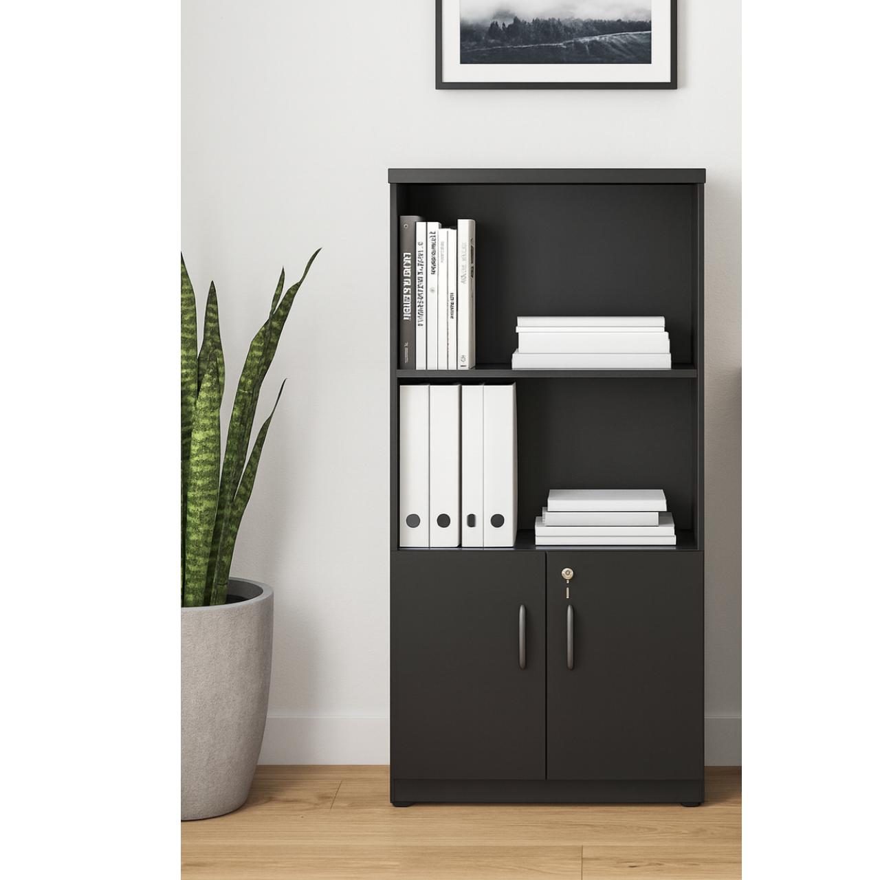 Armário Alto com Portas Inferiores e Prateleiras Abertas – Preto