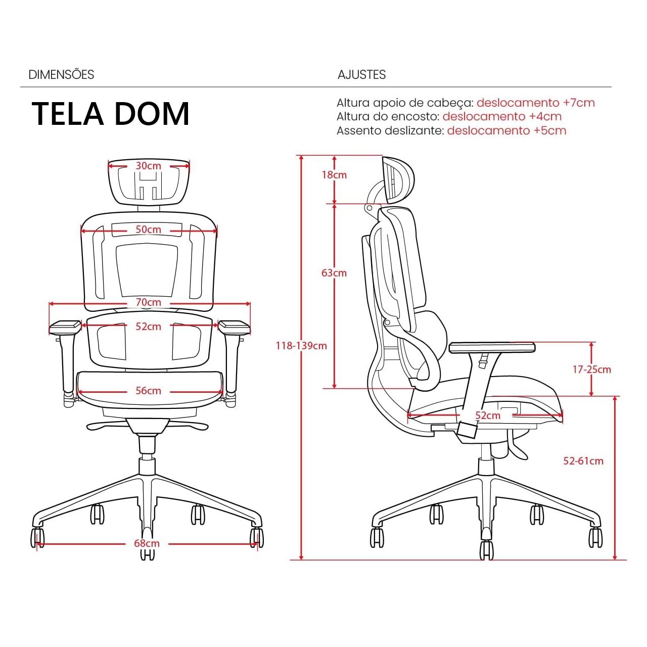 Cadeira de Escritório Presidente Tela DOM – Cor Preta – 32869