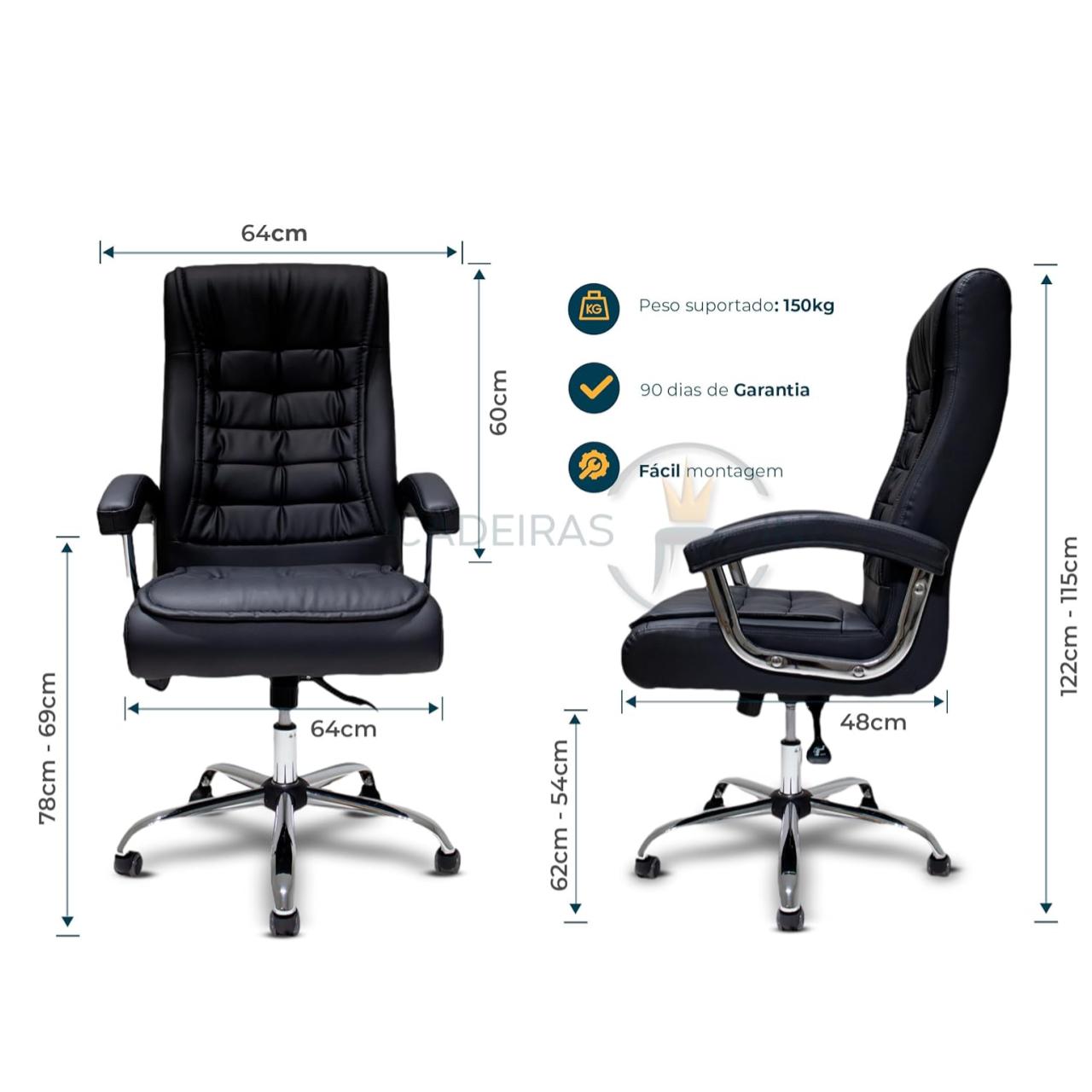 • Estilo executivo sofisticado, com acabamento em couro sintético de fácil conservação.