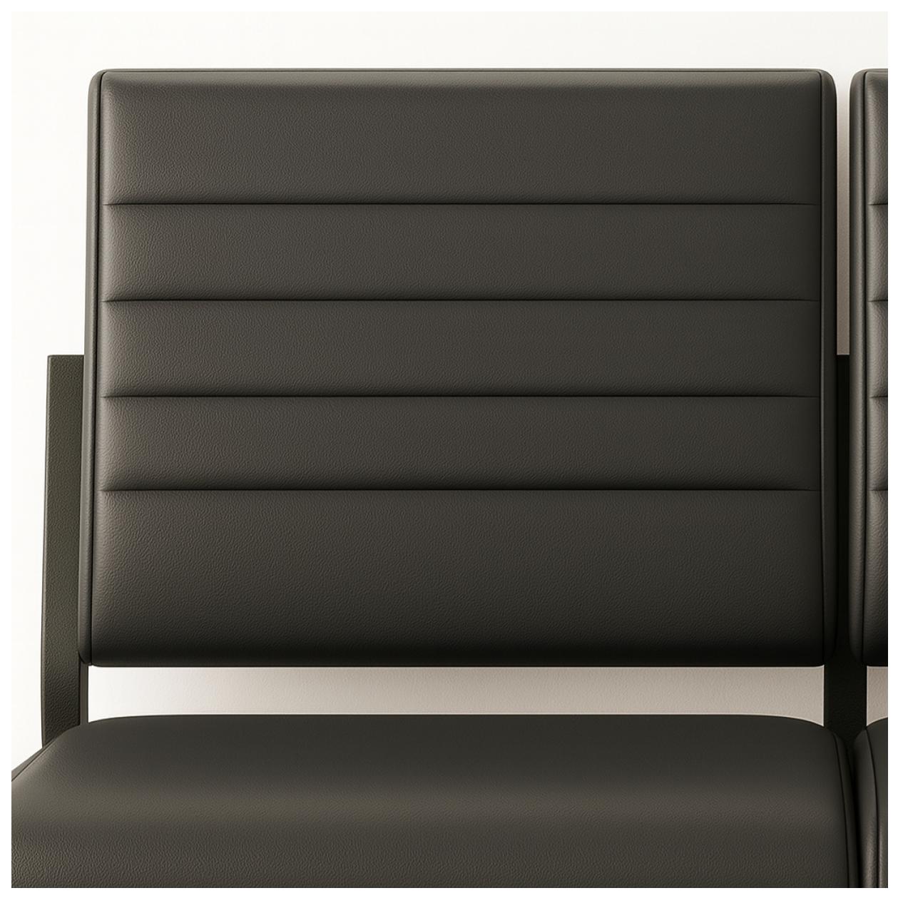 Encosto reto, de altura média, com ergonomia adequada para recepção, salas de espera e ambientes corporativos.